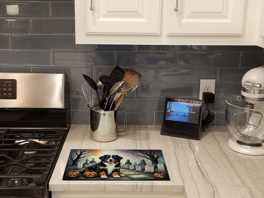 Bernese Mountain Dog Spooky Halloween Glass Cutting Board