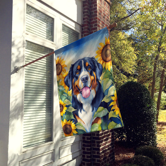 Bernese Mountain Dog in Sunflowers Garden Flag