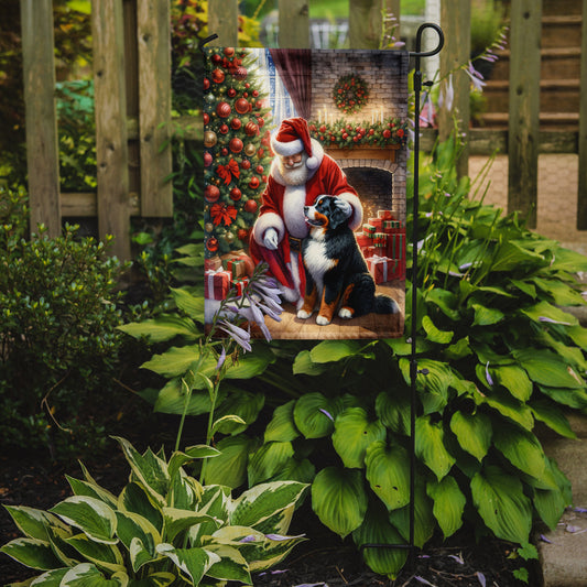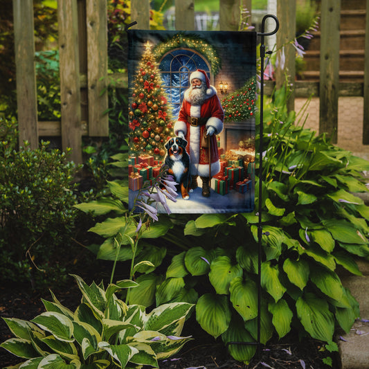 Bernese Mountain Dog and Santa Claus Garden Flag