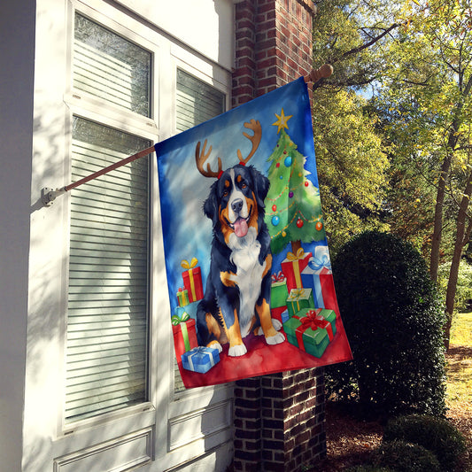 Bernese Mountain Dog Christmas Reindeer House Flag
