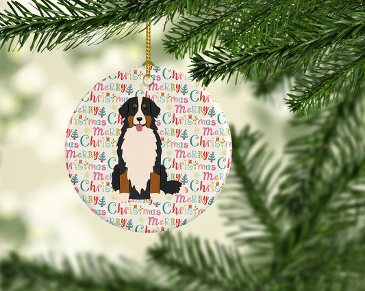 Merry Christmas Bernese Mountain Dog Ceramic Ornament
