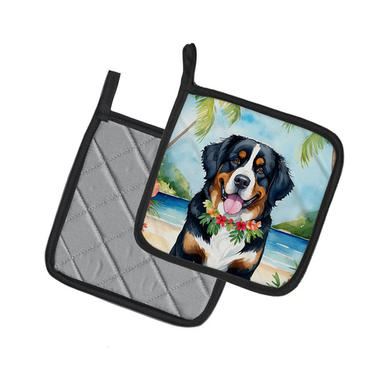 Bernese Mountain Dog Luau Pair of Pot Holders