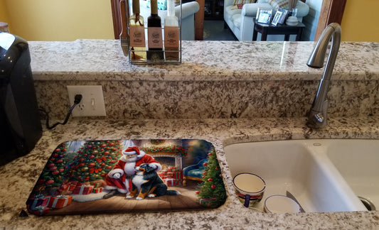 Bernese Mountain Dog and Santa Claus Dish Drying Mat