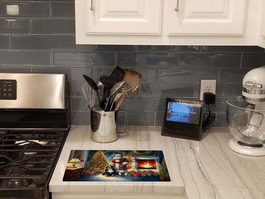 Bernese Mountain Dog and Santa Claus Glass Cutting Board