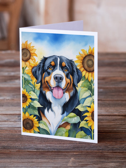 Bernese Mountain Dog in Sunflowers Greeting Cards Pack of 8