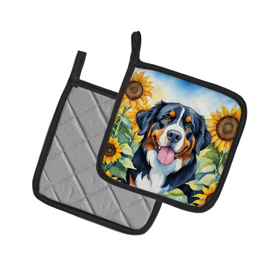 Bernese Mountain Dog in Sunflowers Pair of Pot Holders