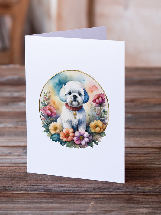 Bichon Frise and Flowers Greeting Cards and Envelopes Pack of 8
