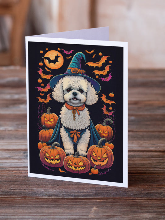 Bichon Frise Witchy Halloween Greeting Cards and Envelopes Pack of 8