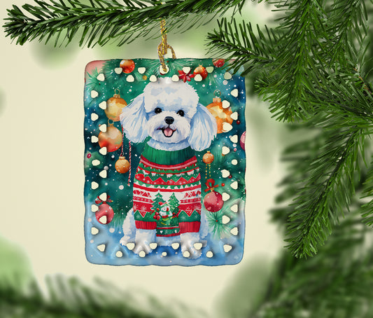 Bichon Frise Holiday Christmas Porcelain Ornament