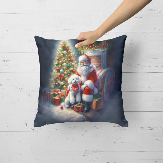 Bichon Frise and Santa Claus Throw Pillow