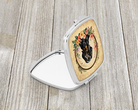 Black and Tan Coonhound and Flowers Compact Mirror