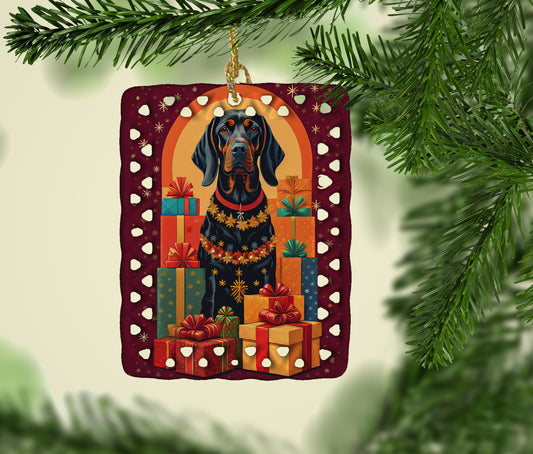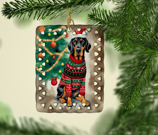 Black and Tan Coonhound Holiday Christmas Porcelain Ornament