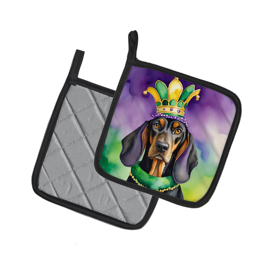Black and Tan Coonhound King of Mardi Gras Pair of Pot Holders