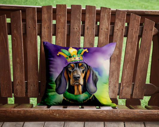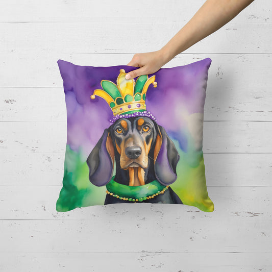 Black and Tan Coonhound King of Mardi Gras Throw Pillow