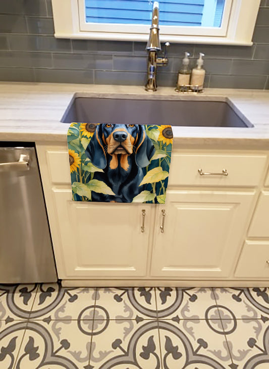 Black and Tan Coonhound in Sunflowers Kitchen Towel