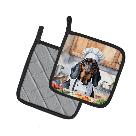 Black and Tan Coonhound The Chef Pair of Pot Holders