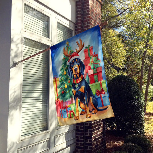 Black and Tan Coonhound Christmas Reindeer House Flag