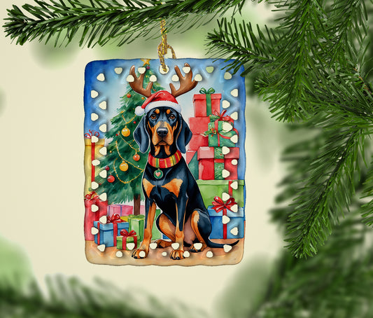 Black and Tan Coonhound Christmas Porcelain Ornament