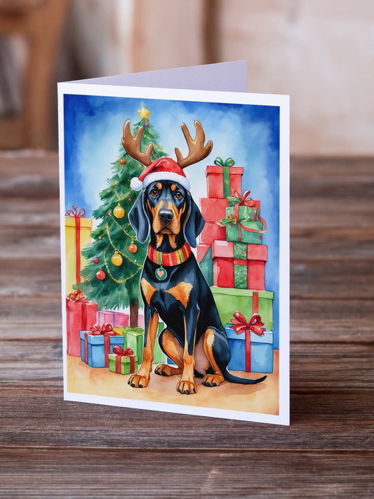 Black and Tan Coonhound Christmas Reindeer Greeting Cards Pack of 8