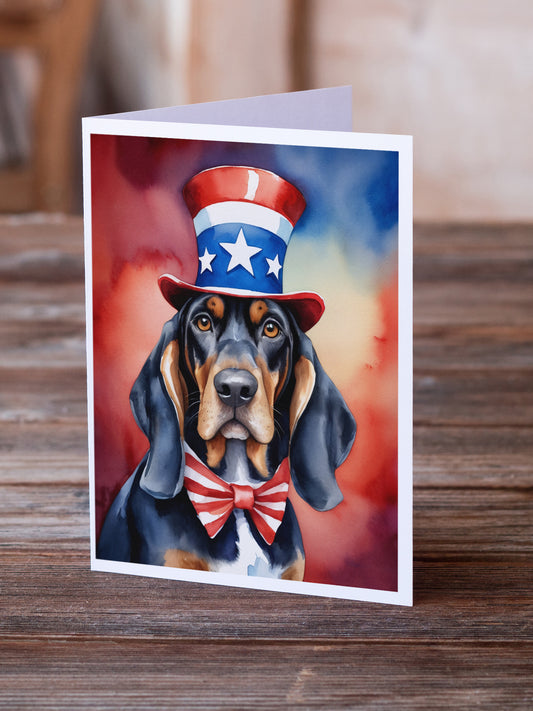 Black and Tan Coonhound Patriotic American Greeting Cards Pack of 8