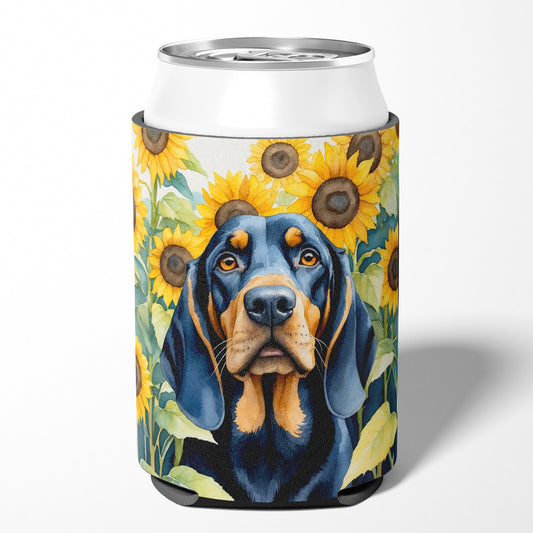 Black and Tan Coonhound in Sunflowers Can or Bottle Hugger
