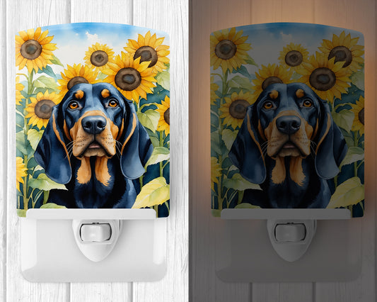 Black and Tan Coonhound in Sunflowers Ceramic Night Light