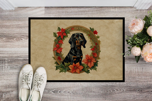 Black and Tan Coonhound Christmas Flowers Throw Pillow