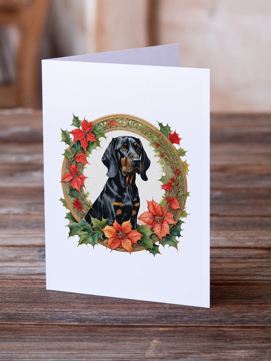 Black and Tan Coonhound Christmas Greeting Cards Pack of 8