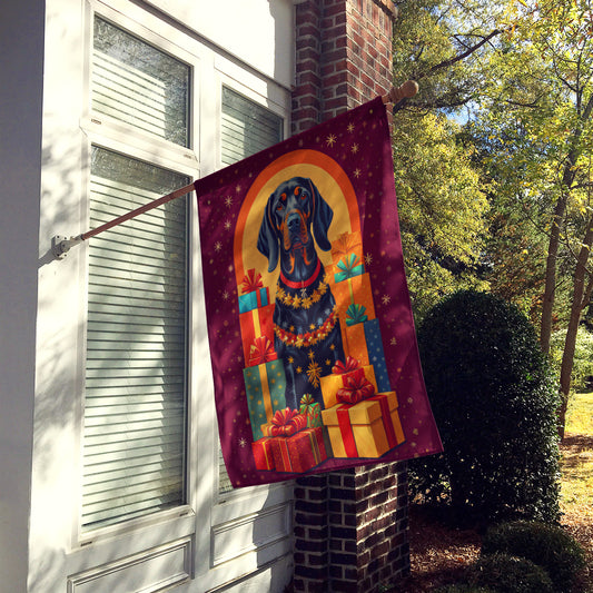 Black and Tan Coonhound Christmas House Flag