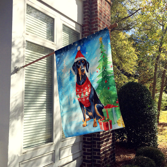 Black and Tan Coonhound Holiday Christmas House Flag