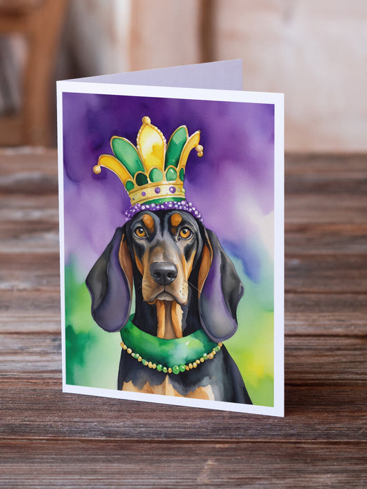 Black and Tan Coonhound King of Mardi Gras Greeting Cards Pack of 8