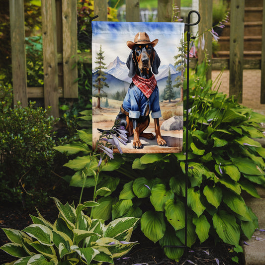 Black and Tan Coonhound Cowboy Welcome Garden Flag