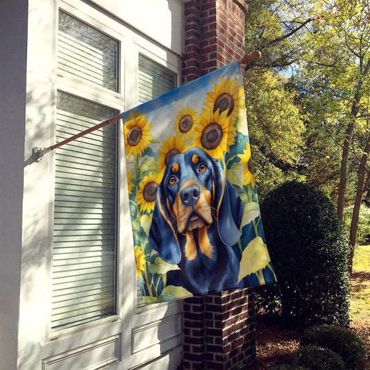 Black and Tan Coonhound in Sunflowers House Flag