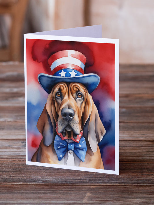 Bloodhound Patriotic American Greeting Cards Pack of 8