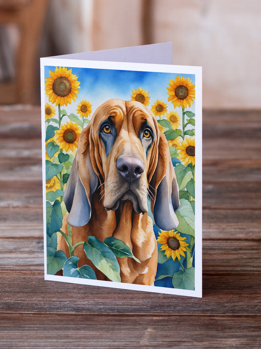 Bloodhound in Sunflowers Greeting Cards Pack of 8