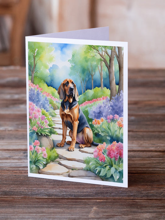 Bloodhound Spring Path Greeting Cards Pack of 8