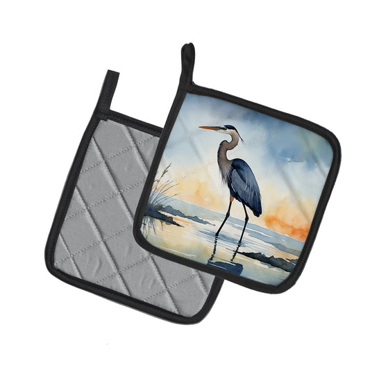 Blue Heron Barely Lit Sky Pair of Pot Holders