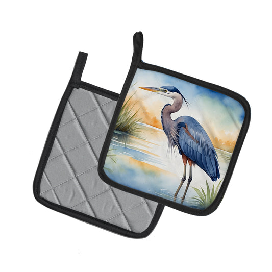 Blue Heron Emerging as the day fades Pair of Pot Holders
