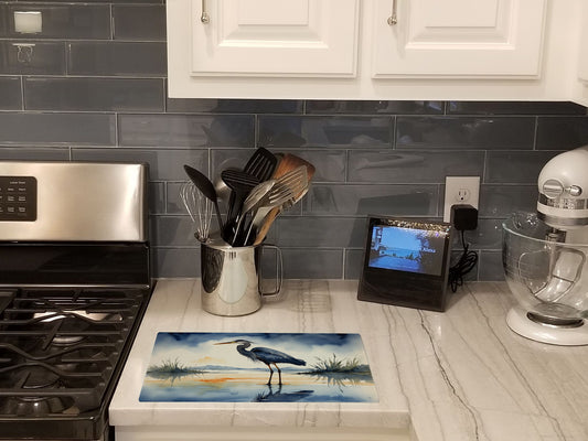 Blue Heron Barely Lit Sky Glass Cutting Board