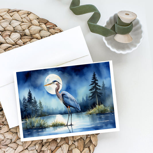 Blue Heron Under the Moonlight Greeting Cards Pack of 8