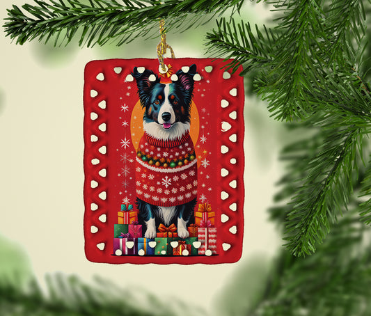 Border Collie Holiday Christmas Porcelain Ornament