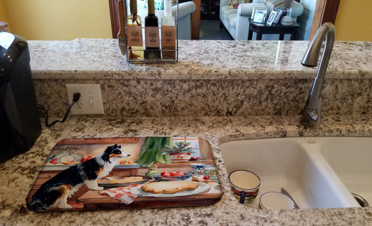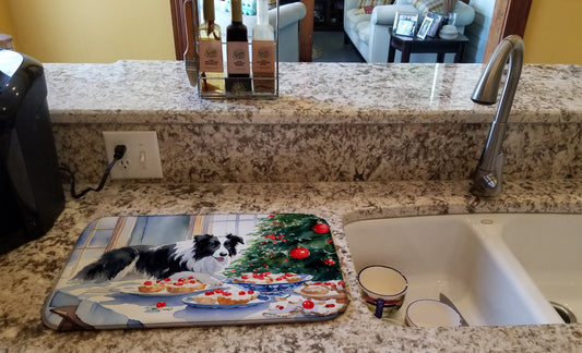 Border Collie Christmas Cookies Dish Drying Mat