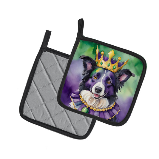 Border Collie King of Mardi Gras Pair of Pot Holders