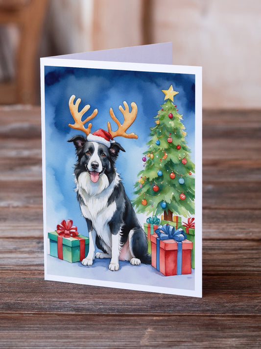 Border Collie Christmas Reindeer Greeting Cards Pack of 8