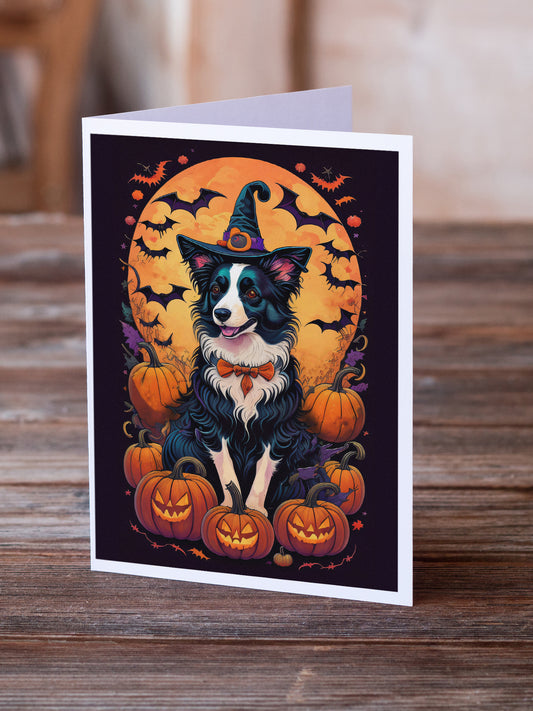 Border Collie Witchy Halloween Greeting Cards and Envelopes Pack of 8
