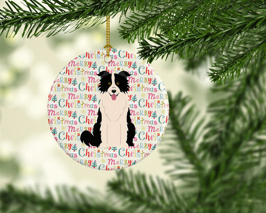 Merry Christmas Border Collie Black White Ceramic Ornament
