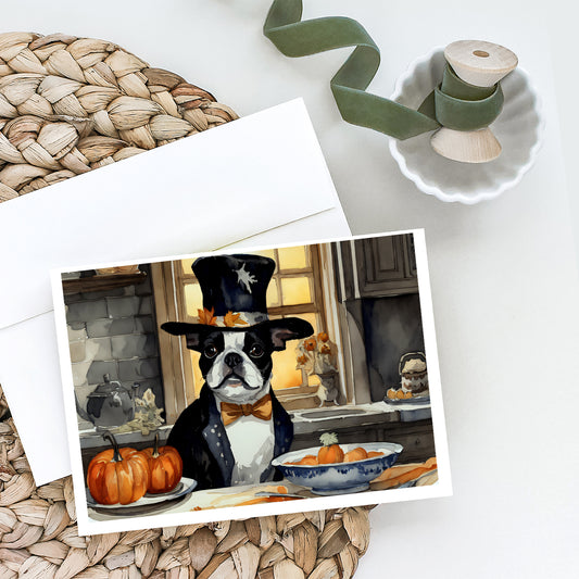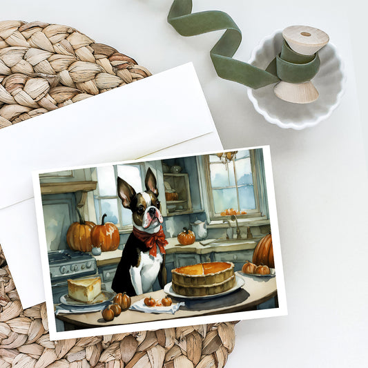 Boston Terrier Fall Kitchen Pumpkins Greeting Cards and Envelopes Pack of 8