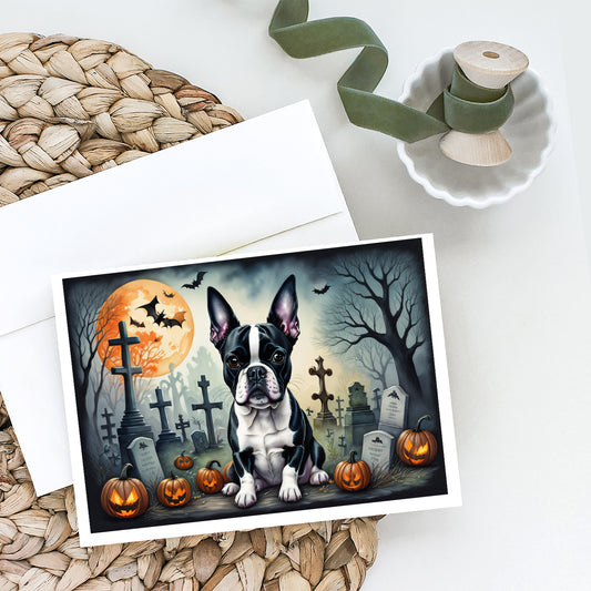 Boston Terrier Spooky Halloween Greeting Cards and Envelopes Pack of 8