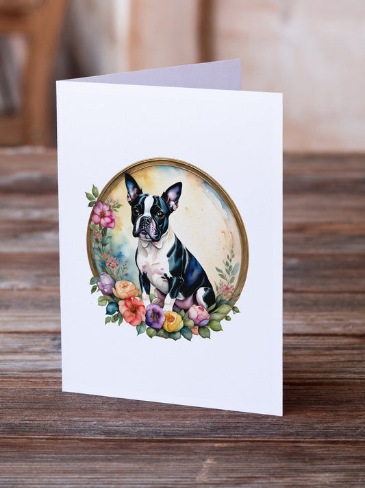 Boston Terrier and Flowers Greeting Cards and Envelopes Pack of 8