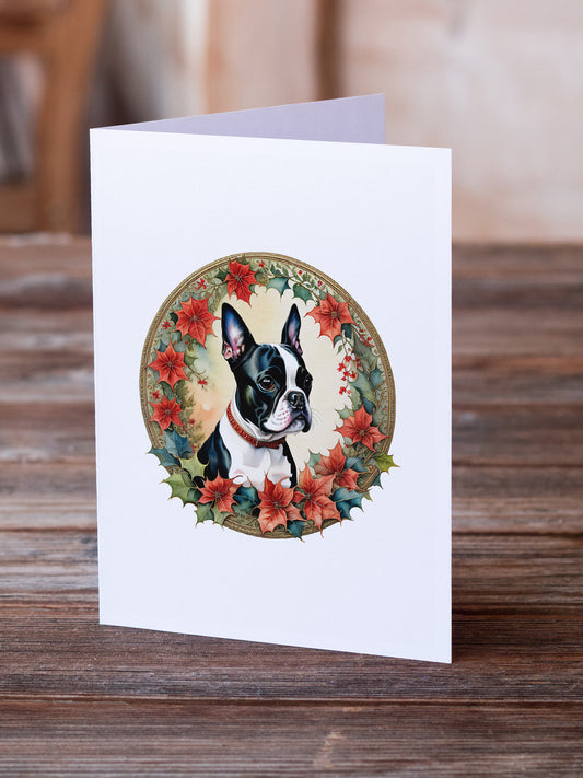 Boston Terrier Christmas Flowers Greeting Cards Pack of 8